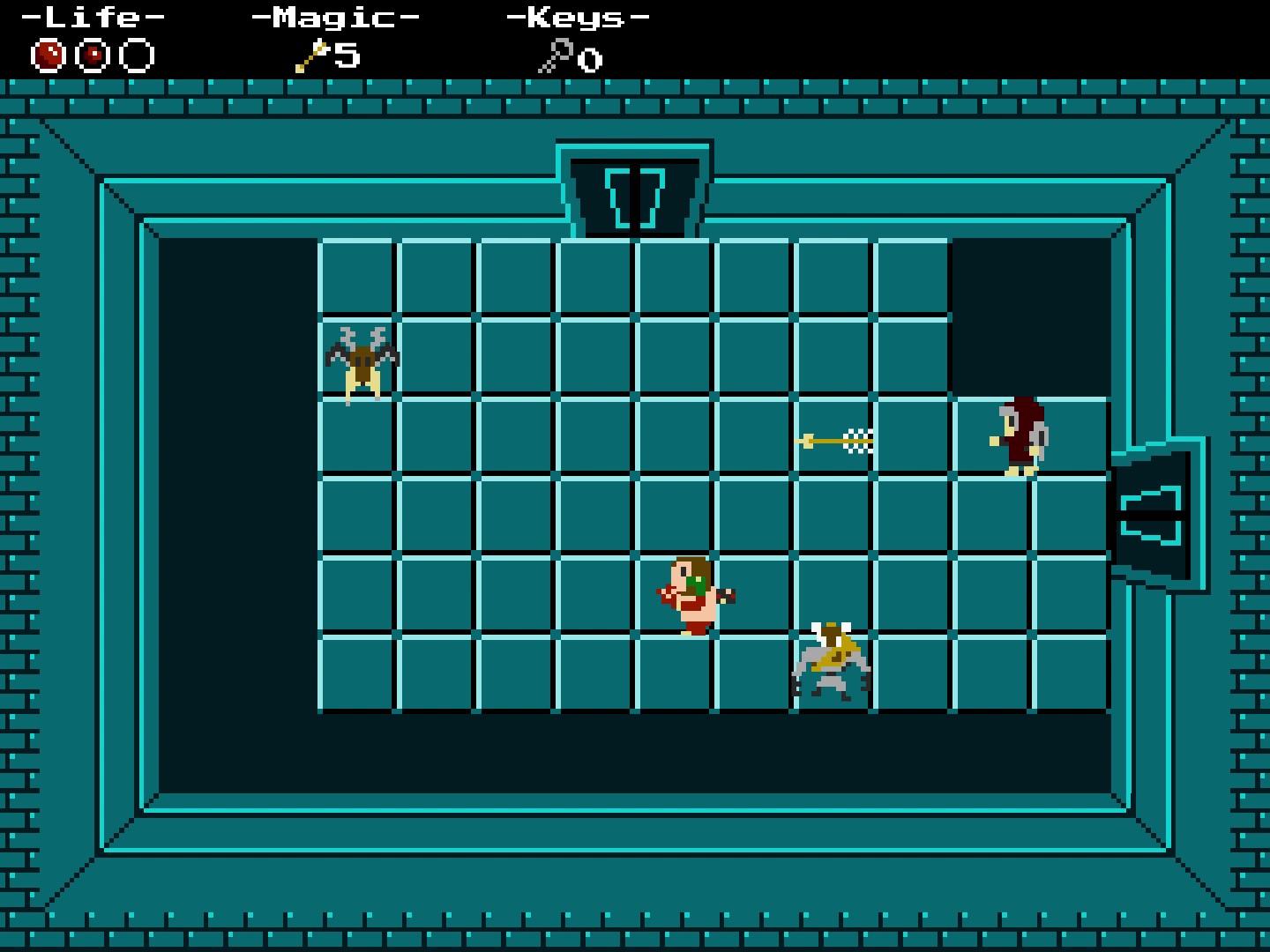 After unlocking the final door, the player must defeat a boss to reach the end of the dungeon.