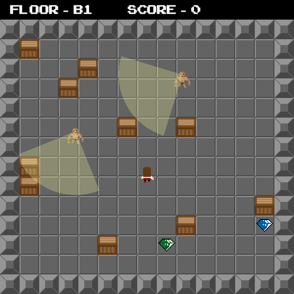 Once the player collects all the gems on a floor, a staircase is revealed that allows them to descend to the next floor.