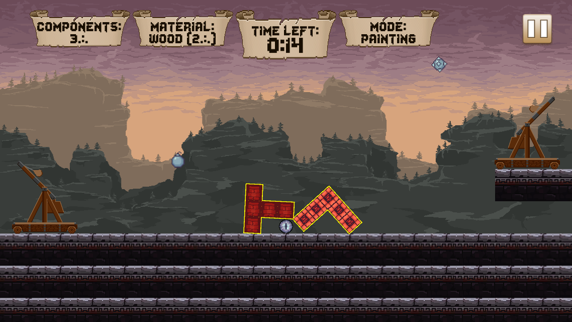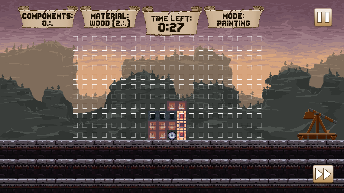 The player starts each level with a certain amount of components they can use to build blocks, with each material being strong or weak against different enemy projectiles.