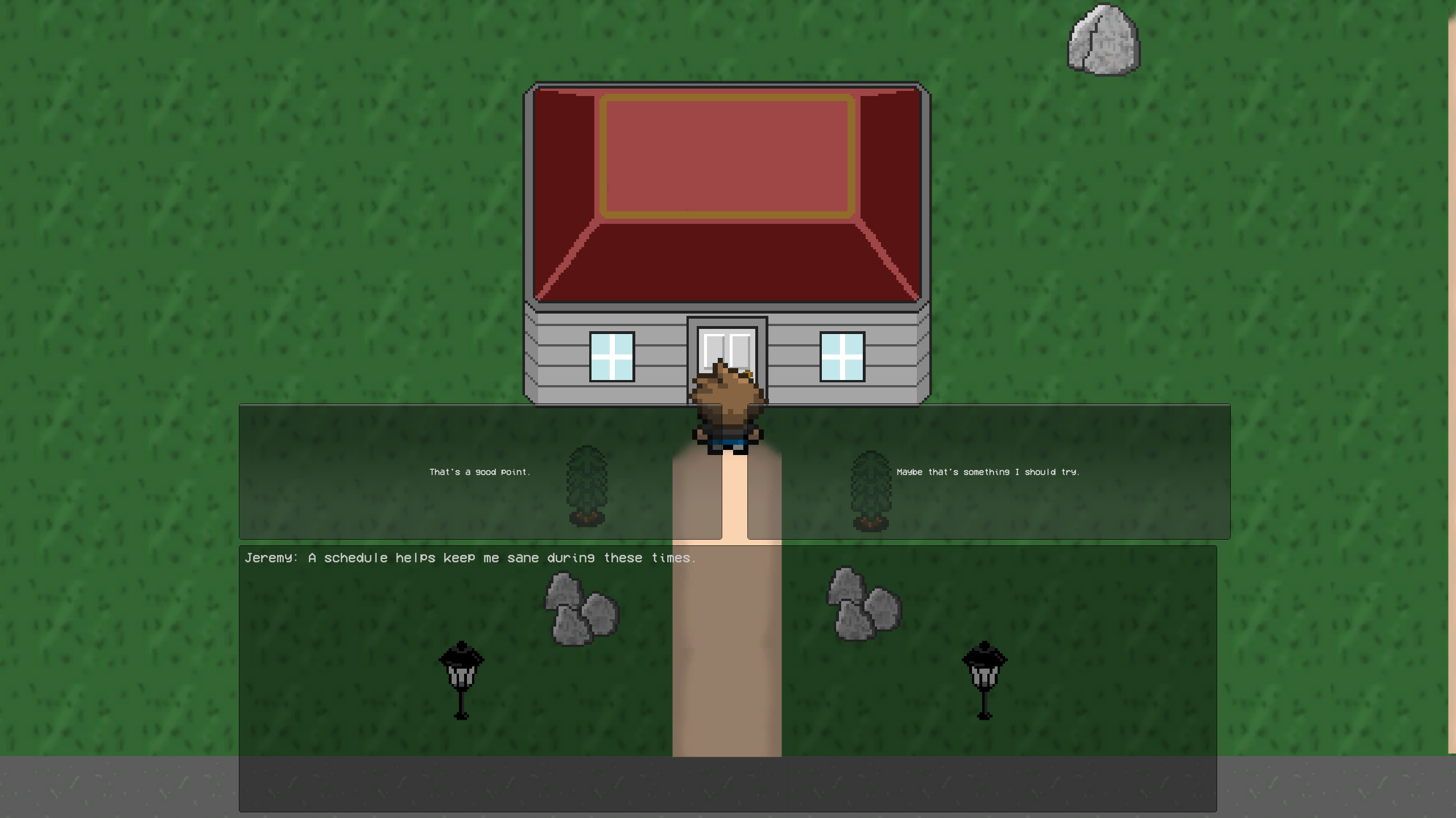 Reaching Out is a short, top-down RPG that involves completing tasks to help your neighbors during a pandemic.