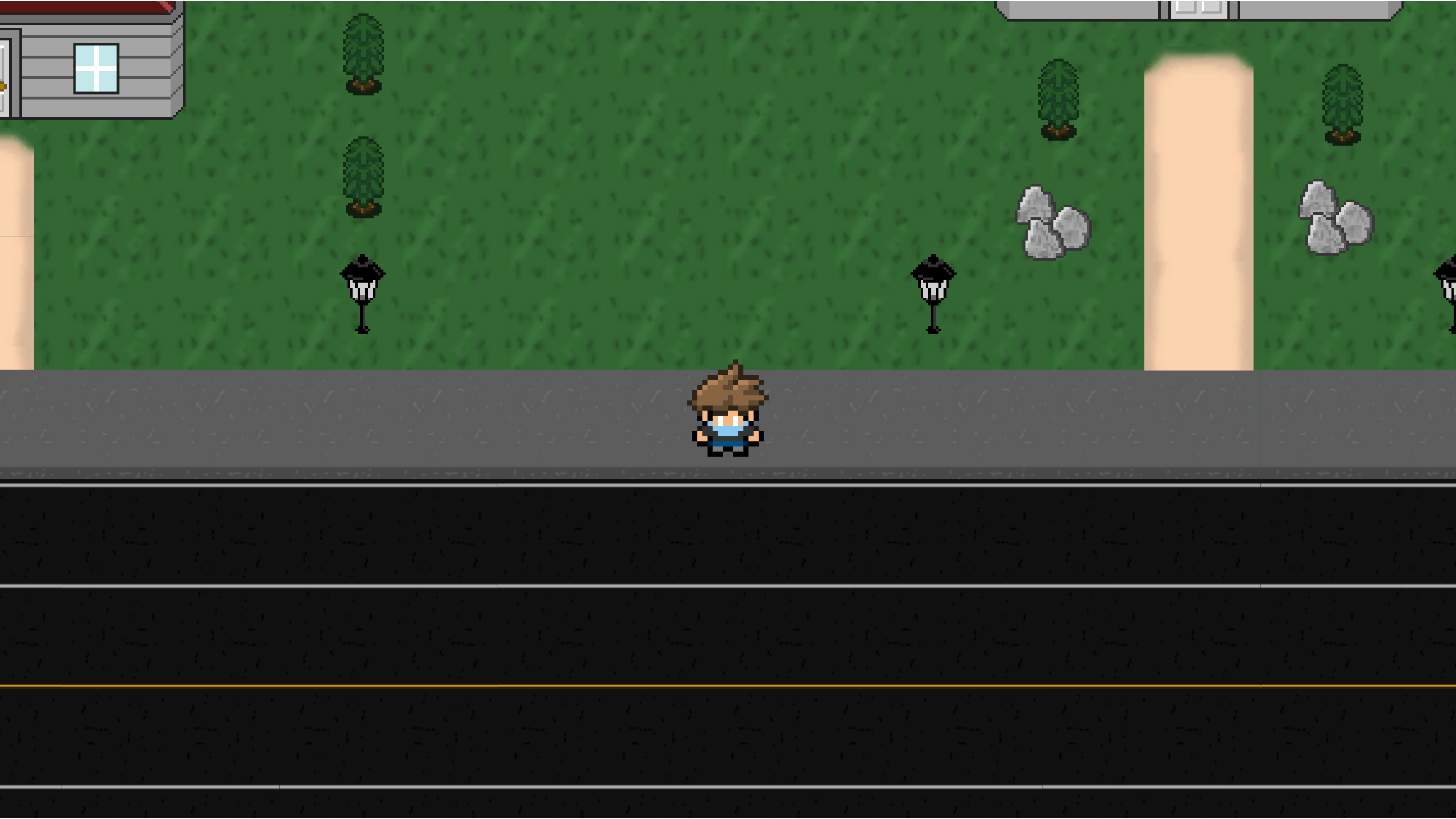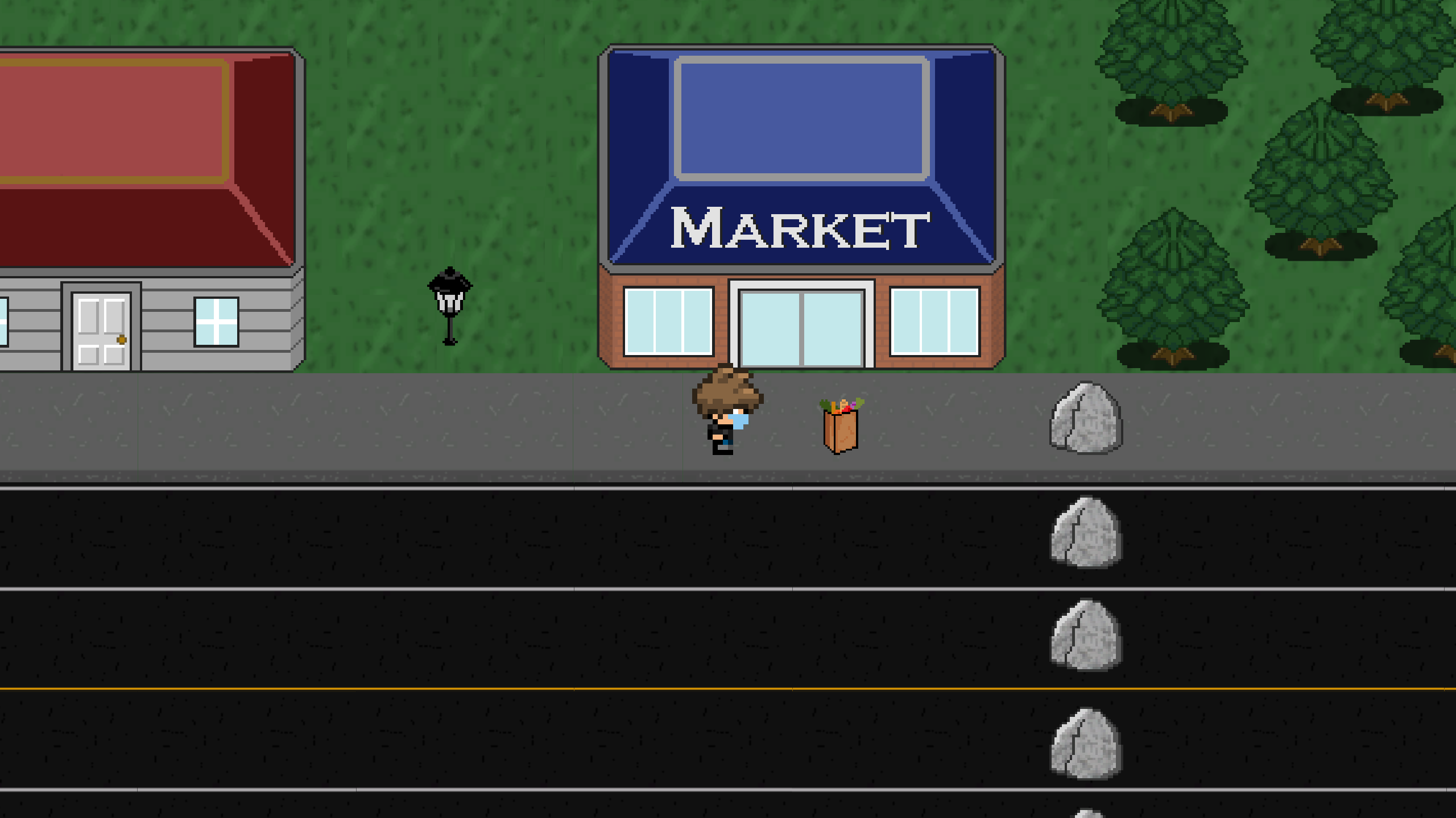 After this change, I worked on drawing pixel sprites for the game's objects, including things like buildings, lamps, rocks, and foliage.