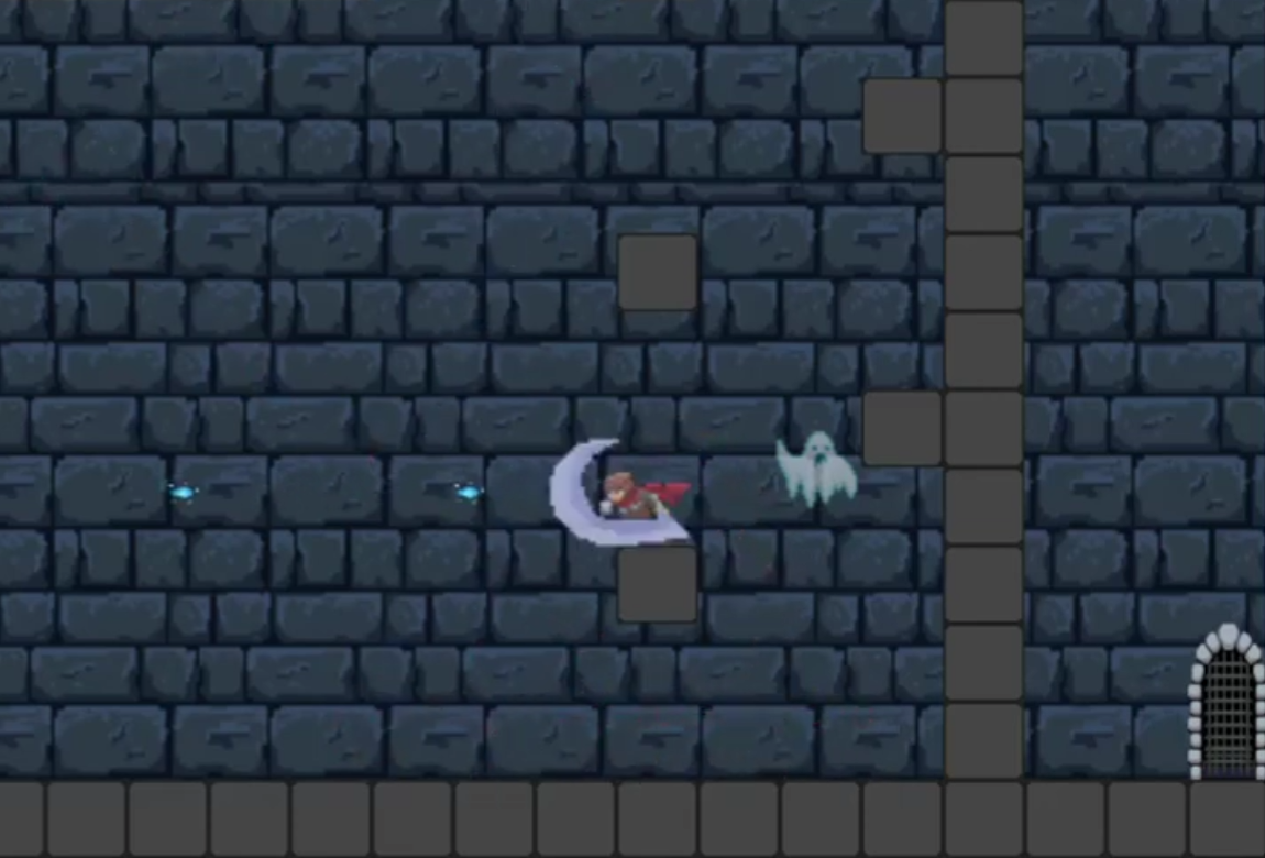 Spooked is a short, 2D platformer that tasks the player with defeating ghosts in order to escape from a haunted castle.